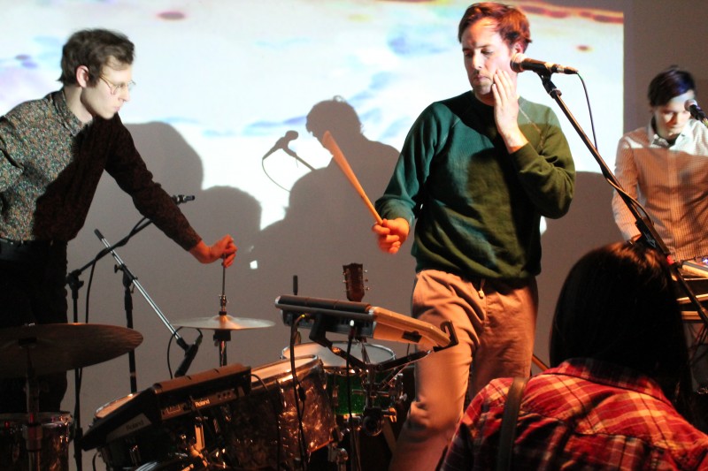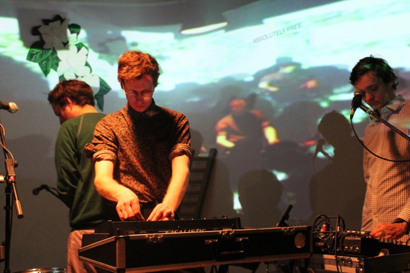 Then, another oldie: “Clothed Woman Sitting,” followed by two other songs from their latest. “Striped Light” got the crowd buzzing, and finally they showcased “Spiral Jetty,” the epic closing song that featured three exciting musical guests: producer Mike Haliechuk of Fucked Up, Joseph Shabason of bands Diana and Destroyer, and sound engineer Marcel Ramagnano, who also helped with the recording on the Absolutely Free album.