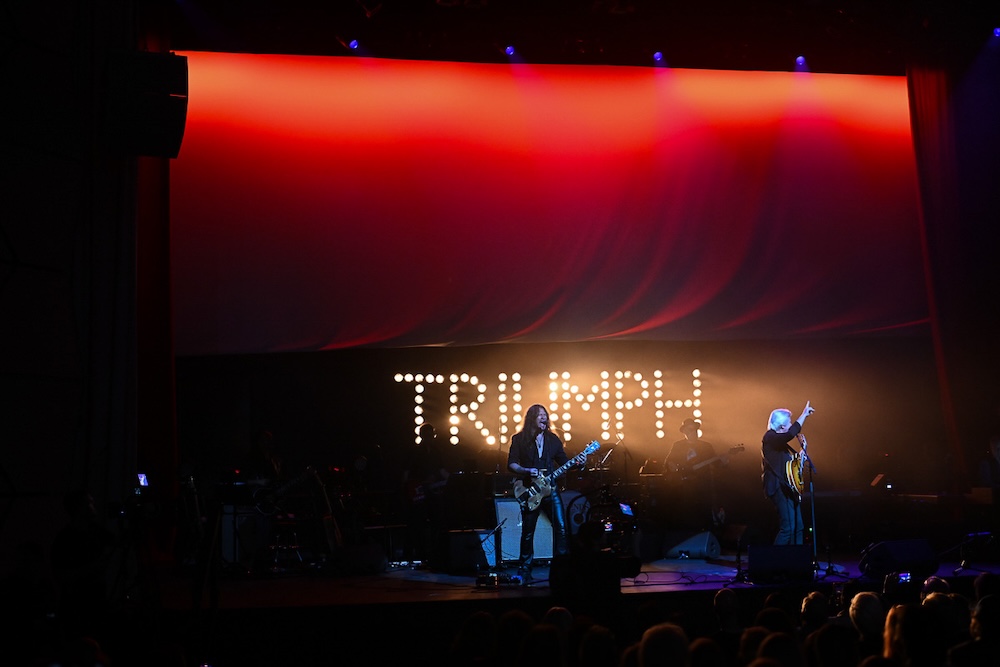 The showmanship and talent that gave us “Wild Horses” and “I Just Wanna Stop” were still there, as were laughs for his ex-girlfriend’s dad, who back in the early 70s jabbed a finger to his “People Gotta Move” dance moves, with a gruff “dump that guy.” Alfie Zappacosta gave voice to an energetic cover of “Move” alongside inductor, music luminary Frank Davies, to bring Vannelli into the Hall of Fame fold. The crowd did move, and certainly did groove. Or Tom Cochrane’s appearance to bring the Triumph trio to the fold, followed by Emmett and Bon Jovi’s Phil X’s ever energetic take on “Lay it on the Line,” light show effects, blaring Triumph sign and all.