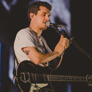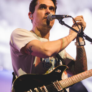 After a short break, set 2 began with four acoustic songs including the mega hit “Daughters” and his now infamous cover of Tom Petty’s “Free Fallin'” in which Mayer could barely be heard over the audience singing along. What is quite fascinating, however, is that less than half of the night’s setlist was comprised of what would be considered big radio hits. Even more impressive is the fact that the audience seemed to remain captivated while Mayer spotlighted various deep cuts and generously lingering guitar solos. The general flow throughout set 2 did seem a bit off at times with what seemed like long transitions between songs but nevertheless the energy remained high and the musicianship unwavering. There was much excitement when Mayer acknowledged a young man’s sign in the audience, leading to the signing of the fan’s guitar.