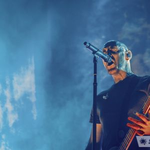 Breaking Benjamin opened with “The Diary of Jane”, one of their biggest singles to date. Every section of every level was nearly full and fans throughout the arena could be heard singing at the top of their lungs. Opening with such a well-known song really jump started their show and set the bar for an anthem-filled set. During “Breath”, the crowd was given an opportunity to fill the Xcel Energy Center with their voices and didn’t disappoint. The five-piece spent much of their time playfully interacting with the crowd and one another all while effortlessly executing the setlist. As the set progressed it was clear that there were a significant number of die-hard Breaking Benjamin fans in the house filling the role of backing vocals throughout the show. Each of the three guitarists explored and entertained the fans from every corner and perch of the multilevel stage. Frontman Benjamin Burley spoke highly and stated how they were influenced by KoRn and how very gracious and excited they are to be on tour together. Both have been making music and tirelessly touring for the past 20 years. During “I Will Not Bow” they invited about two dozen Breaking Benjamin fans onstage for the final song of the night. It’s clear that Breaking Benjamin has put in their time and paid their dues.