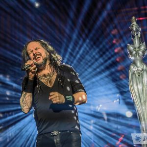 20 years after first breaking on the hard rock scene KoRn is now a headlining mainstay, who are now touring in support of their new album The Nothing. In typical KoRn tradition, “Blind” was one of the first openers in the set. The high energy call and response fan favourite amped the crowd into a frenzy. KoRn maintained that level of excitement with an energetic stage presence throughout their set. Vocalist and frontman Jonathan Davis emerged midway with bagpipes indicating that the ever-present nursery rhyme-inspired “Shoots and Ladders” was on deck. They seamlessly incorporated the thunderous breakdown from Metallica’s “One” and the crowd went wild. . There was little on mic banter from Vocalist Jonathan Davis besides the occasional crowd prompt and the only lulls in the show came between songs or during the intro to a new single. Once the crowd recognized the song they responded with horns and cheers.