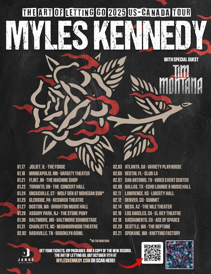 Four shows deep into the North American leg of The Art Of Letting Go Tour, Myles Kennedy, along with openers Tim Montana and Sons Of Silver, took to The Concert Hall for the sole Canadian date on their tour. In addition to celebrating the release of his third solo album, the spectacular The Art Of Letting Go, released on October 11, 2024. this performance marked Kennedy’s first ever solo performance in Toronto.