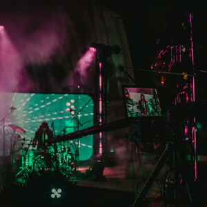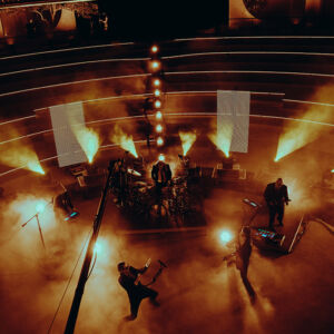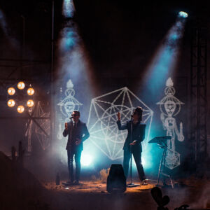 As the performance progresses into the second half of the album, the staging slowly starts to change from the original set of industrial elements to the appearance of natural earthbound features like cacti. The spacecraft is landing. As Puscifer performs “A Singularity”, the staging is lit up like the night sky and as the camera pulls back, we see a beautiful, almost intimate, performance in the desert.